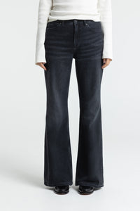 Jeans a vita media con gamba svasata in un morbido cotone flex che grazie a una nuova tecnologia di filatura rimane naturalmente elastico senza l'utilizzo di fibre sintetiche.