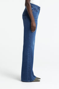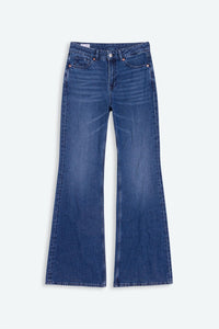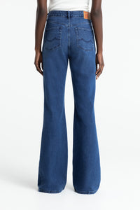 Jeans a vita media con gamba svasata in un morbido cotone flex che grazie a una nuova tecnologia di filatura rimane naturalmente elastico senza l'utilizzo di fibre sintetiche.