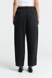 Jeans dalla vestibilità rilassata, a palloncino e cropped. Hanno le tasche applicate posteriori, le tasche oblique davanti e la chiusura con bottone, cerniera e coulisse regolabile.